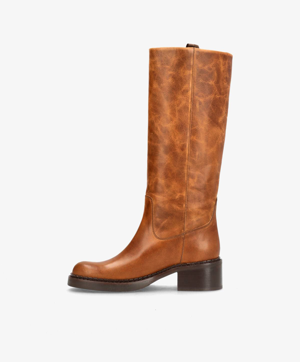 EXPOSED LONG - Cognac læder - Lang støvle Dame