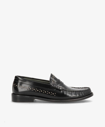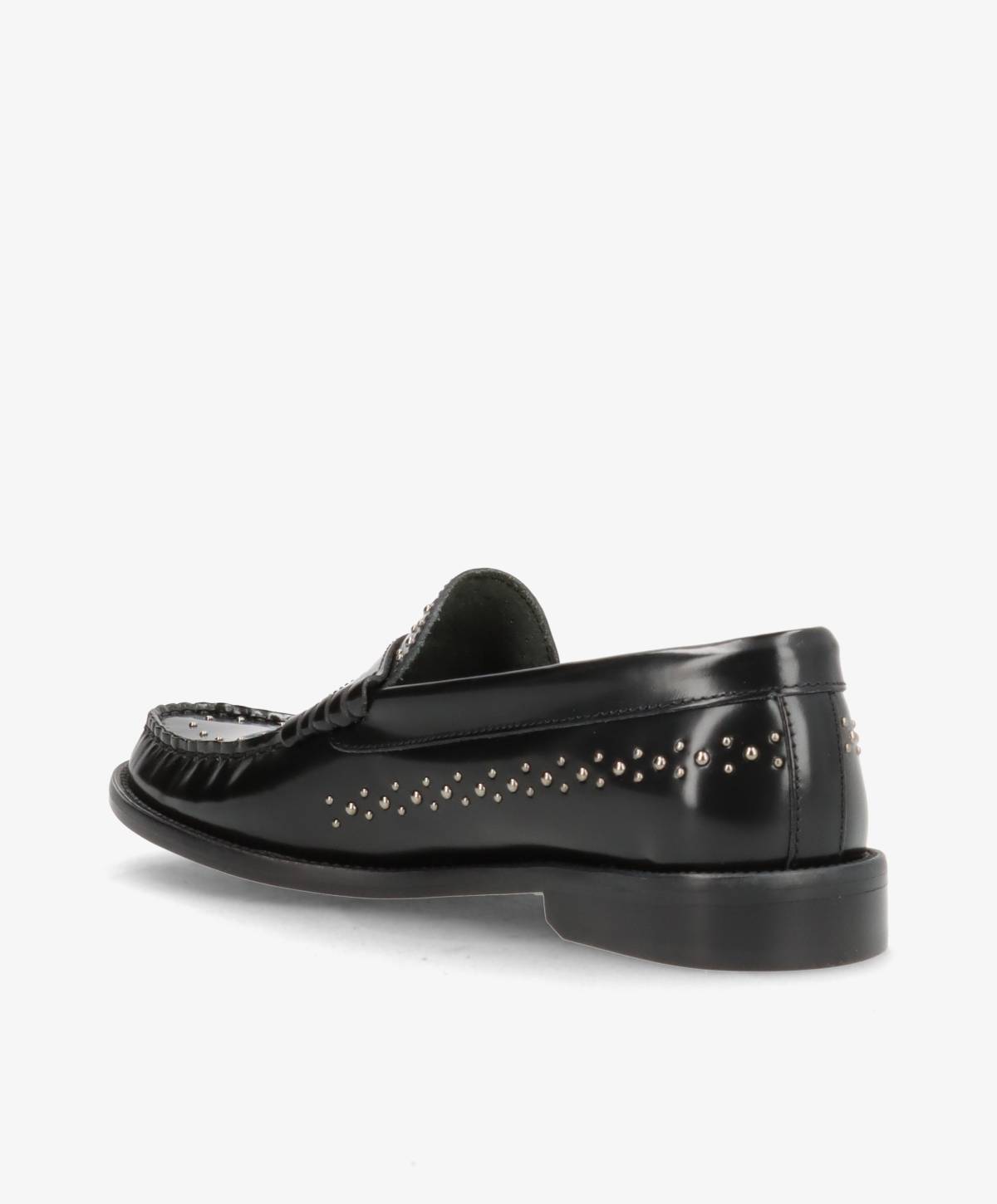 MAYFAIR P er den perfekte blanding af klassisk stil og moderne kant. Denne loafer, designet i Danmark og håndlavet i Europa, udstråler eksklusivitet med sin lækre læderfinish og de unikke nitter, som giver skoen et edgy twist. De delikate metalnitter langs kanten og vristen tilfører et råt og moderne look, som nemt kan styles op eller ned til forskellige outfits.
