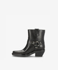 Disse bikerstøvler fra phenumb copenhagen er den perfekte kombination af rå attitude og komfort. De er lavet af 100% skind, hvilket gør dem bløde og holdbare, samtidig med at de giver et elegant udtryk. Støvlernes design med metalringdetaljer og remme tilføjer en edgy kant til ethvert outfit, hvilket gør dem ideelle til både hverdag og festlige anledninger. Med en solid hæl og lynlås i siden, får du en god pasform og nem adgang til støvlerne.