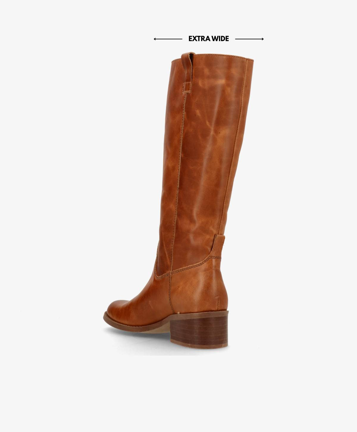 MARTINA LONG WIX - Cognac læder - Lang støvle Dame